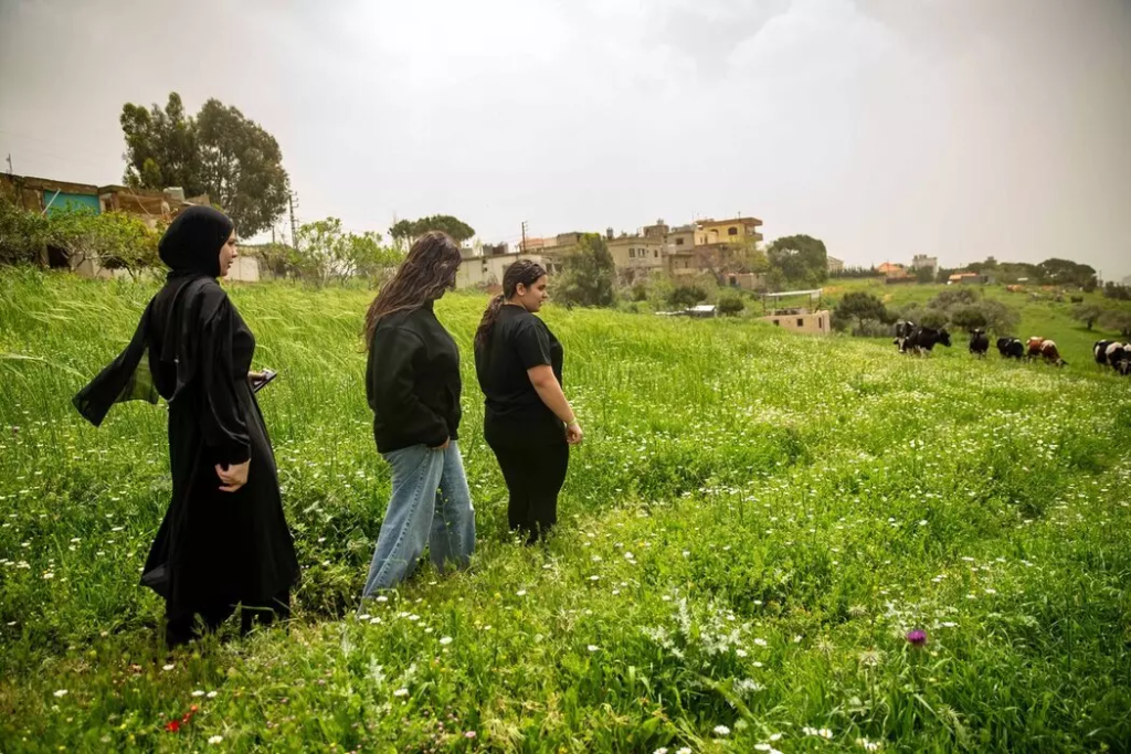 Ensemble avec sa sœur et sa meilleure amie, elles partent se promener dans les chemins bordés de prairies en fleurs. « Sur ces rochers, là-bas, on venait pique-niquer. On avait une si belle vie ici, à la campagne, tout le monde se connaît, et on passait tellement de temps dans la nature », se souvient Maya en cueillant des pissenlits, de la mauve, des feuilles de salade sauvage. Réfugiée près de Beyrouth depuis un mois et demi, elle dit détester la ville, sa pollution, son manque de chaleur humaine. « Il n’y a que dans la terre du Sud que je me sens bien, c’est mon identité », affirme-t-elle, comme tant d’habitants du Sud-Liban.